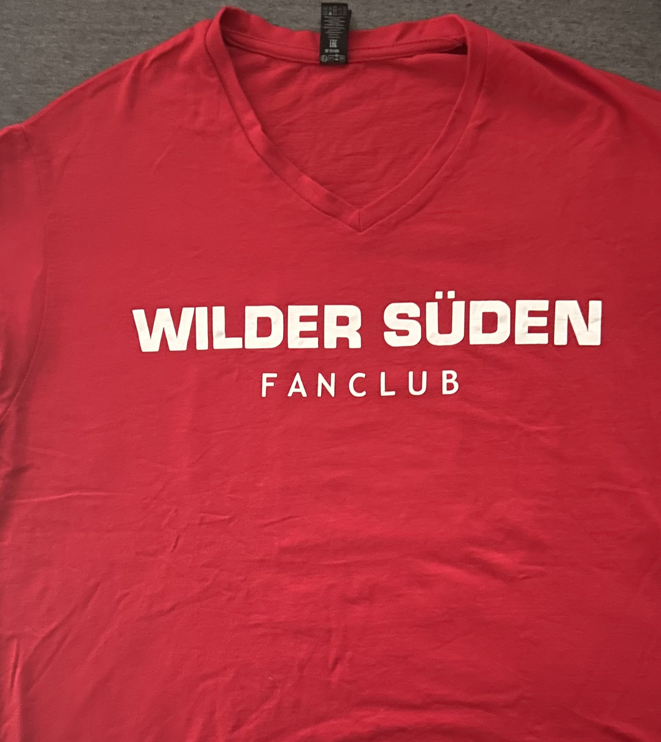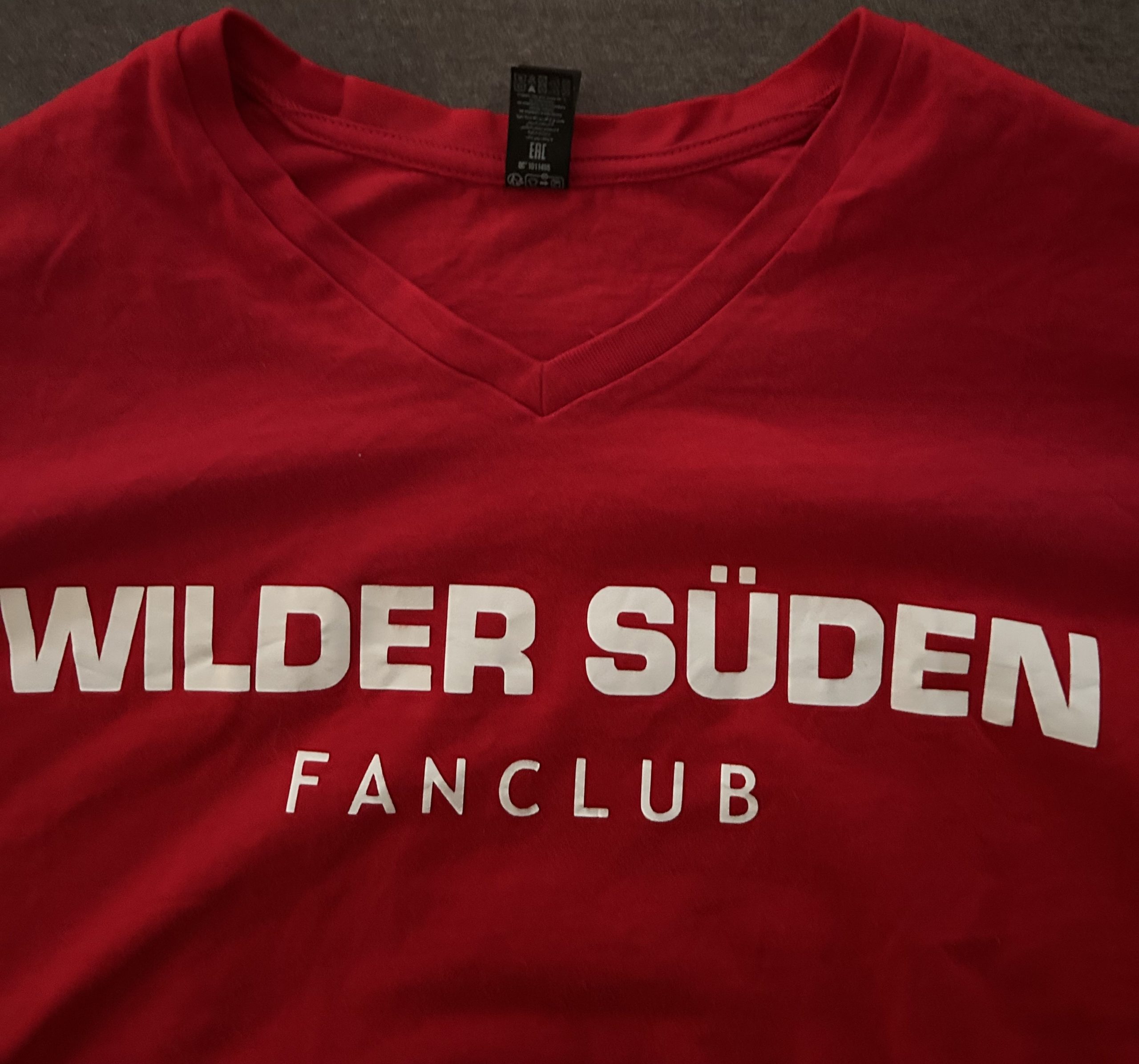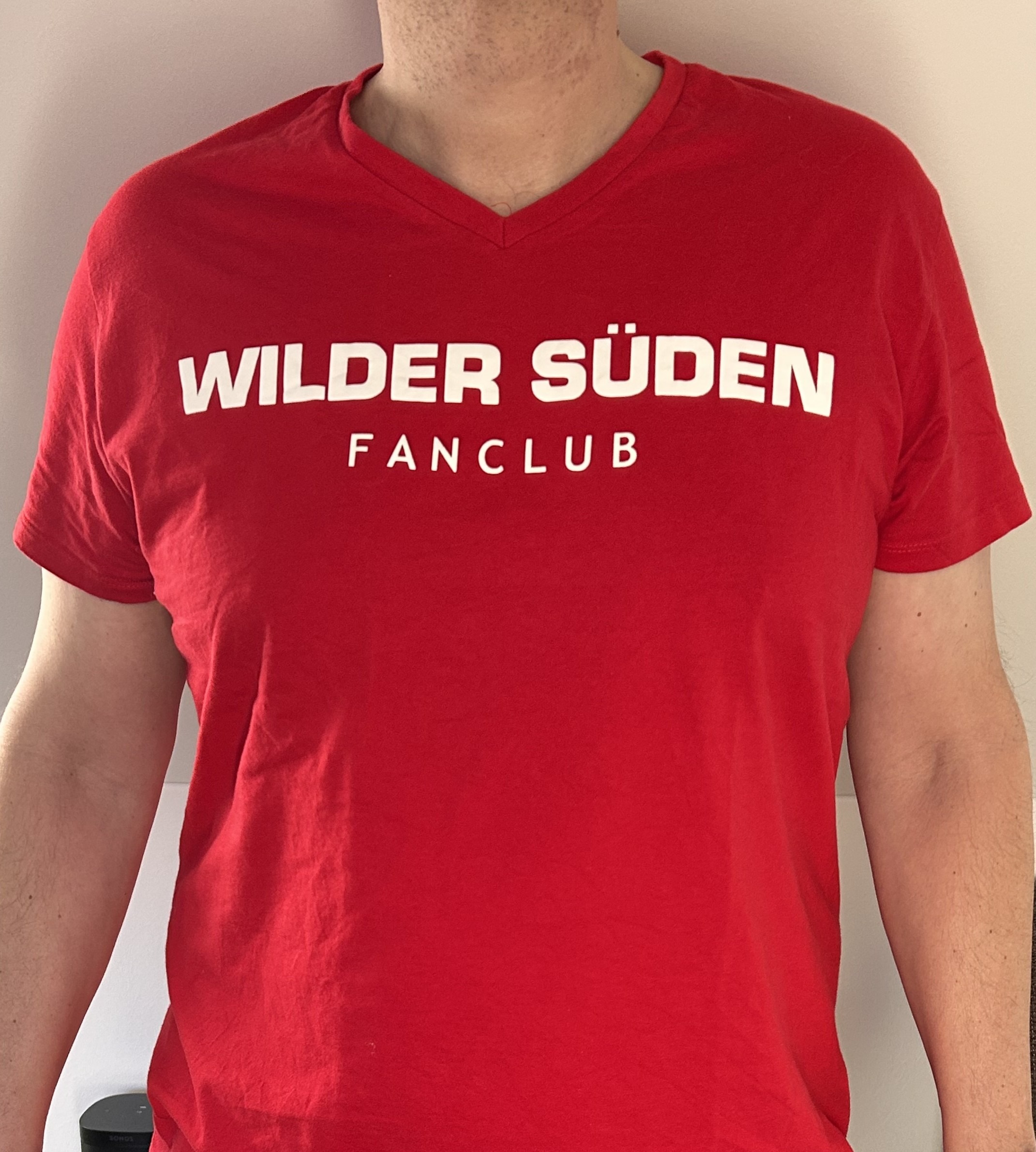 Im klassischen rot und mit dem großen Aufdruck „WILDER SÜDEN“ Fanclub und FC-Logo in groß auf dem Rücken. Sehr gute Baumwollqualität und ein V-Neck Halsabschluss.